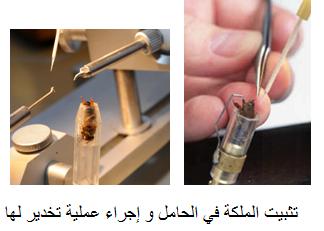 حامل تلقيح الملكة: يوجد به أنبوبة لحجز الملكة بداخلة ويقوم بحفظ السائل المنوي أثناء تخدير الملكة وأثناء حقن السائل المنوي بها.
