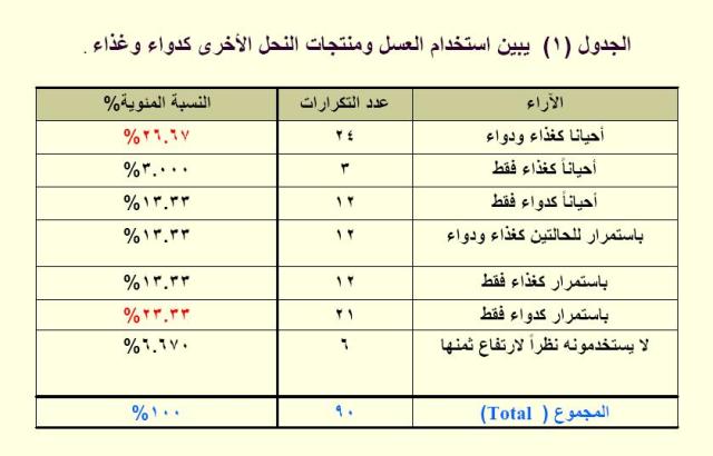 من النتائج المتحصل عليھا يتضح بان شريحة لا بأس بھا من الأطباء لديھم معرفة ودراية كاملة بأھمية منتجات النحل وقد استخدموھا