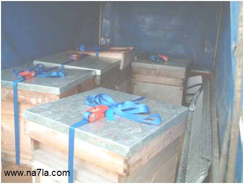 وصلنا أخيراً عبر مزارع أبقار وطرق وعرة ومنحدرة. وصلت الخلايا بسلام، لكن هناك أزيز غاضب ينبعث منها. |
