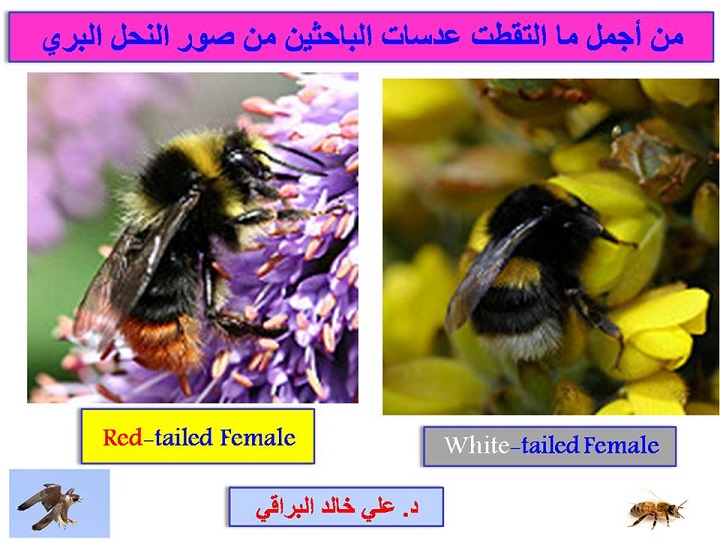 ونقدم في الصورة نوعين من إناث نحل بري هي النحل أبيض الذيل والأحمر الذيل....وهي تجرس(تجني الرحيق) من الأزهار.