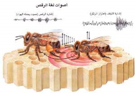 تقدم النحلة الكشافة العائدة من الحقل تقريرا بما وجدته خارج العش بأن ترقص وترف بجناحيها محدثة بذلك أصواتا منخفضة التردد يحملها الهواء، وتتزاحم رفيقات عشها حولها وتلتقط هذه الأصوات بوساطة عضو السمع الدقيق الموجودة على الشدفة الثانية من كلا قرني الاستشعار؛ وبعد ملاحظة الرقصة بانتباه لبرهة وجيزة تطير خارج العش بحثا عن موضع الطعام دون حاجة إلى دليل.
