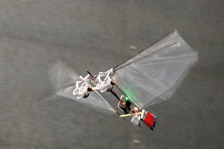 هذا DelFly Nimble، وهو روبوت مصمم في جامعة Delft للتكنولوجيا لمحاكاة تحليق النحل