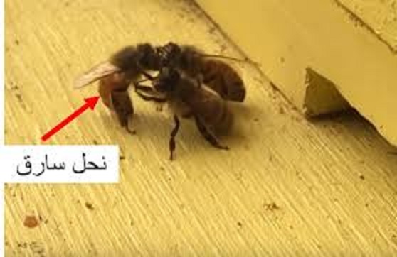 السرقة:هي هجوم نحل الطوائف القوية الموجودة بالمنحل علي الطوائف الضعيفه بغرض الحصول علي العسل الموجود بها وتخزينها في الخلايا الخاصة بها.