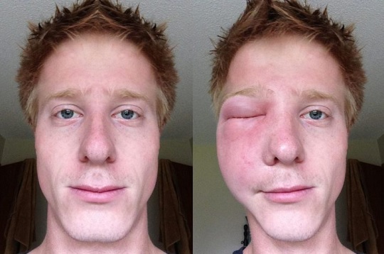 تنجم أعراض الحساسية المفرطة عن رد فعل مفرط للجهاز المناعي تجاه السم الذي تم حقنه. في التفاعل ، يطلق الجهاز المناعي الهيستامين والمواد الكيميائية الأخرى التي تتسبب في انتفاخ وتسرب الأنسجة - مثل اللسان والحلق و / أو المسالك الهوائية في الرئتين و / أو الأوعية الدموية في الدورة الدموية. يمكن أن يؤدي ذلك إلى عدم قدرة الشخص على التنفس و / أو السكتة القلبية.