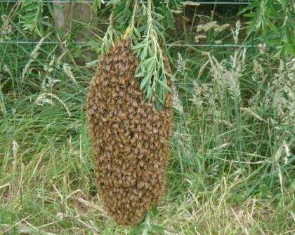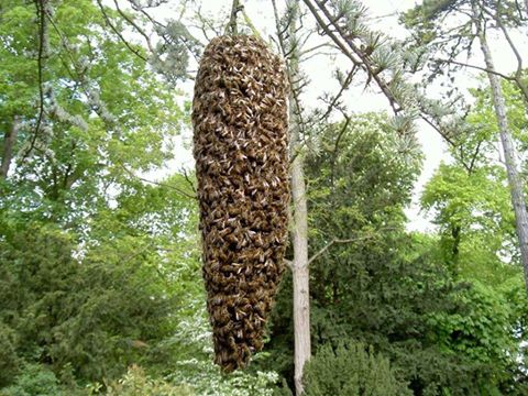 وقد يحدث أحياناً نتيجة ذلك أن تقع الملكة على الأرض فيقوم النحل بالبحث عنها فإن لم يجدها يعود مرة ثانية لخليته الأصلية أما إن وجدها فإنه يتجمع حولها, أما إذا تمكنت الملكة من الطيران بسهولة فإنها تطير أولاً ثم يتجمع النحل حولها بعد ذلك, وفى مكان استقرار الطرد يتجمع النحل في شكل عنقودى مشتبكاً مع بعضه بواسطة أرجله حيث يظل في مكان التجمع يوم أو أكثر حتى تقوم الشغالات الباحثة بتحديد موقع نهائى يستقر فيه الطرد.