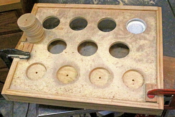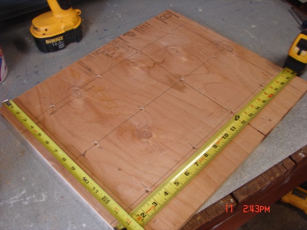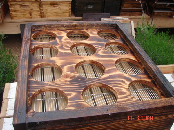 1- في البداية عليك أن تعمل أرضية من لوح خشب (معاكس) بقياس صندوق الخلية وتعمل بها فتحات دائرية