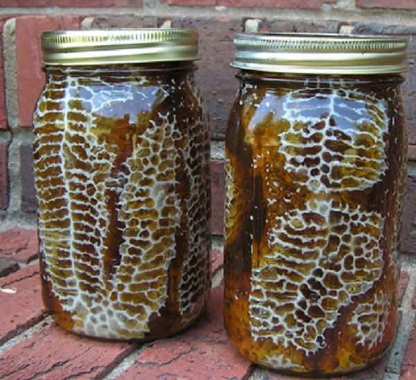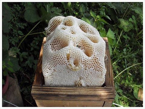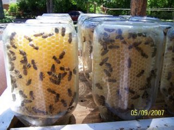 النحل يضع العسل في القارورة لاحظ النحالون أن النحل يمكن أن يبني الشمع للأعلى إذا لم يتسنّ له تعليق الشمع على إطارات أ و على الغطاء الداخلي.