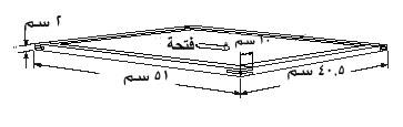 أ- إطار ذو 3 جوانب: سمك الدف 2سم وعرضه 5 سم، العرض الكلي 40.5 سم ، الطول الكلي 55.5 سم.