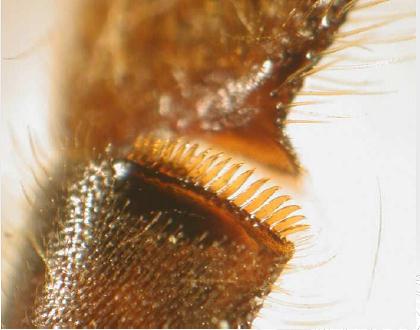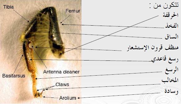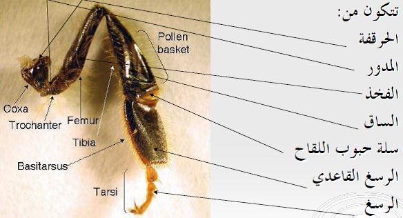 الأرجل الوسطى فيها تحور كلّاب لنزع كتلة غبار الطلع
