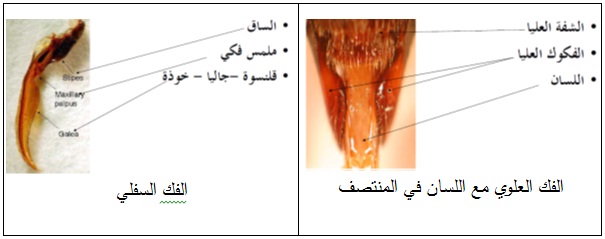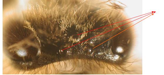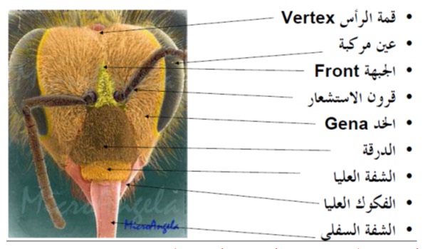 الأجزاء المهمة الموجود على أو بداخل رأس النحلة: