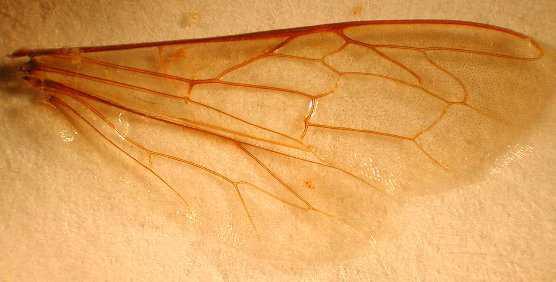 زوجين من الأجنحة الغشائية، يتصل الجناحان مع بعضهما أثناء الطيران من خلال وجود صف من الخطاطيف تخرج من الحافة الأمامية للجناح الخلفي تشتبك مع جزء سميك (يشبه الميزابة) من الحافة الأمامية للجناح الأمامي مما يؤمن قوة وسرعة في الطيران حيث يبلغ عدد ضربات الأجنحة خلال الطيران 220 ضربة/ثانية وفي حالة التهوية حتى 350 ضربة/ثانية وتصل سرعة الطيران إلى حوالي 45 كم/ساعة.