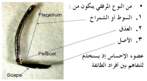 أولا: قرون الاستشعار: يتركب كل قرن استشعار من 12 عقلة ويحمل عليه مايلي: