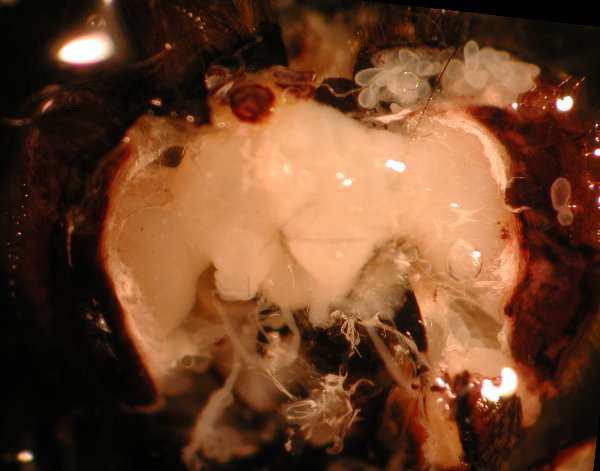 أعضاء داخلية: الدماغ والعقد تحت العصبية، الغددالصماء أوالغدد ذات الإفراز الداخلي، الغدد الفكية، الغدد تحت البلعومية، الغدد اللعابية، منظرأمامي للرأس وأجزاء الفم.