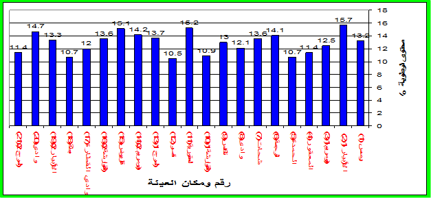 أما العينات 11 ، 8 فربما يرجع السبب الأساسي لوجود التلوث بالرصاص إلى الأسمدة والمبيدات التي تستخدم بكثرة في هذه المناطق كون هذه المناطق من المناطق الزراعية ويكثر فيها استخدام المبيدات والأسمدة ،ورغم وجود عينات أخرى التقطت من مناطق زراعية يكثر فيها استخدام المبيدات والأسمدة ألا أنه لايوجد بها تلوث بالرصاص وهذا يرجع إلى الاختلاف في توقيت جني العسل ، فإذا تم فرز العسل وتجميعه بعد استخدام المبيدات يكون هذا العسل عرضة للتلوث أكثر من العسل الأخر الذي تم تجميعه قبل استخدام المبيدات وكذلك نوع المبيد المستخدم يؤثر في تلوث عينة عن الأخرى .