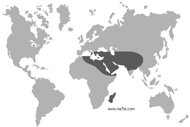 ينتشر في المناطق الجنوبية والشرقية من حوض البحر الأبيض المتوسط، المناطق الجنوبية الشرقية من قارة آسيا، شمال شرق إفريقيا.