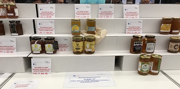 ما فاجأ الجميع هو أن 45 في المئة منها فشلت حسب تحليل المختبر. لاحظ المشاركون الذين دخلوا منطقة المنافسة على الفور الإدخالات المفقودة التي تم استبدالها ببطاقات تنص على أن "هذا العسل فشل في الفحص المعملي ولا يمكن الحكم عليه مرة أخرى." تمحور الحديث حول العسل حول مسألة الغش. كان مسؤولوا الأبيمونديا متحمسين بشأن تفاصيل أسباب الرفض ، خاصة بيان بلدان منشأ تلك العينات، لكنهم صرحوا أن المختبر تم اختباره لأشياء مثل السكريات غير المشروعة ومخلفات المضادات الحيوية ومبيدات الآفات و HMF وتناقضات بلد المنشأ. كما لاحظ رون فيبس في صفحات ABJ في سبتمبر/أيلول ، وفي محاضرة في الكونغرس: "لا تزال المعركة ضد العسل الملوث والأعسال المغشوشة مستمرة. في حين أنه من المحزن أن نرى ما يقرب من نصف عينات العسل تفشل في الوفاء بالمعايير المقبولة للعسل النقي، إلا أن الحقيقة أن تكنولوجيا الاختبار تبدو ناجحة".