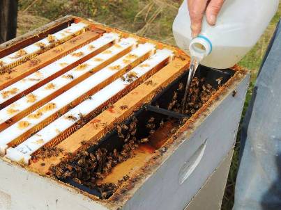 في حال حدوث نقص في الرحيق ومخزون العسل داخل الخلايا لا بد من تزويد النحل اما بالعسل او بدائله من الجلوكوز او السكر الابيض. - الشرط الاساسي في تغذية الخلايا بعد انتهاء موسم العسل ان تكون كافية للخلية ذلك لاجبار العاملات على تخزين جزء منه حول عش الحضنة. - هناك عدة طرق لتزويد الخلايا بالعسل تبدأ بترك كمية وافرة من العسل عند القطف كغذاء للنحل، - يمكن تزويد الخلايا ببراويز من العسل المخزن لدى النحال من مواسم سابقة. - يمكن تغذية النحل على محلول من العسل بعد إذابة العسل في الماء بان يوضع هذا المحلول في غذايه الخلية. تغذية الخلايا ببدائل العسل