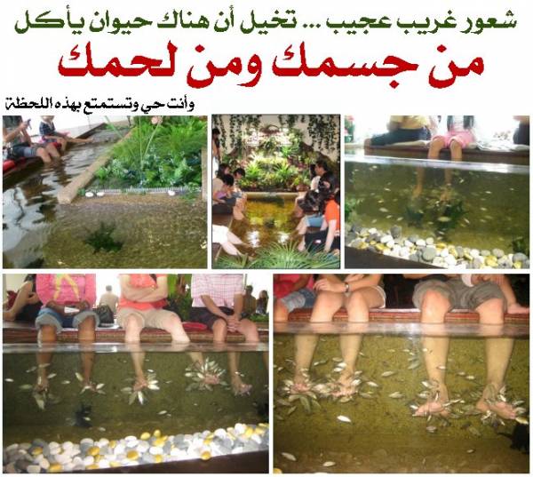 المساج بالأسماك وهو موجود في العاصمة الماليزية كوالالمبور ( آسيا الحقيقية ) ويلاقي شعبية كبيرة ...