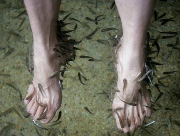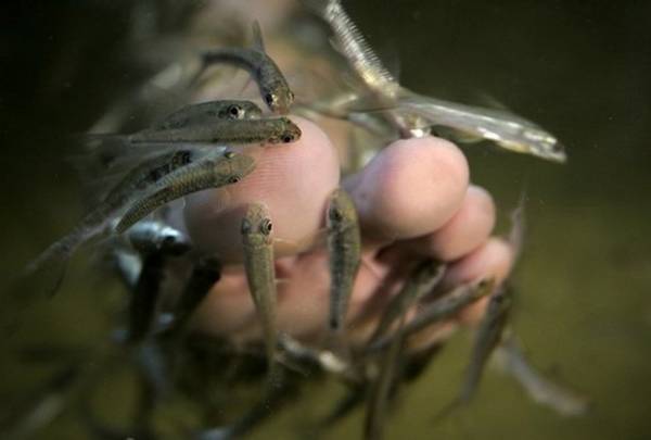 السمكة الصغيرة وقضماتها الصغيرة تعطي شعورا با لراحة والإسترخاء وهي علاج جيد للذين يعانون من أمراض جلدية بسيطة
