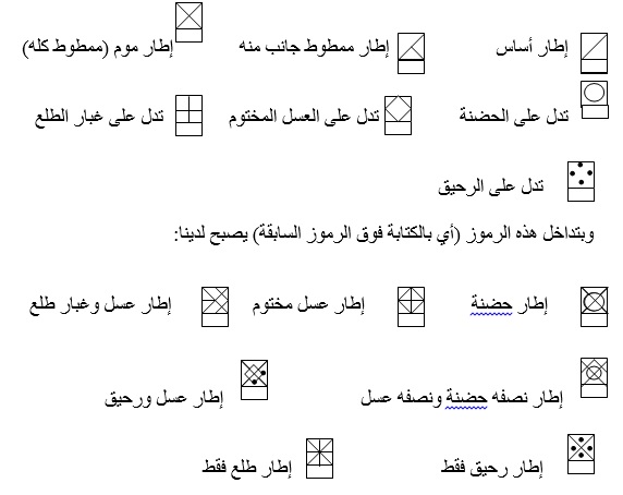 ويمكن للنحال أن يستعمل رموزاً أخرى يضعها بنفسه للدلالة على حالات غير مذكورة هنا ويهمّه تسجيلها.