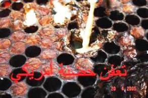 - وجود اليرقات الميتة على شكل مومياء في النخاريب وأمام باب الخلية وعلى قاعدة الخلية أسفل الأقراص.