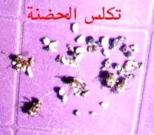 - لون اليرقات الميتة أبيض أو رمادي وقوامها كلسي.