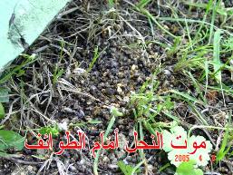 - عدم قدرة الشغالات على الطيران ووجود النحل زاحفاً على الأرض متهدل الأجنحة.