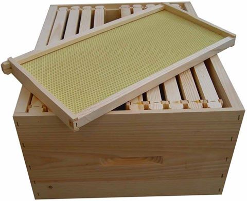 2- يرفع صندوق الحضنة السفلي عن القاعدة ويوضع على القاعدة صندوق خلية به تسعة أقراص شمعية فارغة ويوضع بينها أحد أقراص حضنة الطائفة ( بيض ويرقات ) بما عليها من شغالات على أن تكون الملكة بينها .
