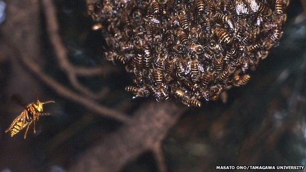 نحل العسل يخبر الدبور المهاجم أن يبتعد