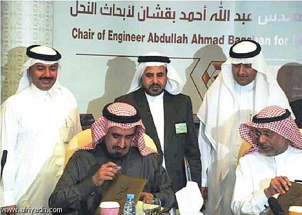 أكد المهندس عبدالله بن احمد بقشان على أهمية أبحاث النحل ومنتجاته معتبراً ثروة نحل العسل من الثروات الهائلة والمهمة في المملكة والتي لم تستغل بعد الاستغلال الأمثل. وأشار بقشان في كلمة له خلال توقيعه صباح أمس مع مدير جامعة الملك سعود الدكتور