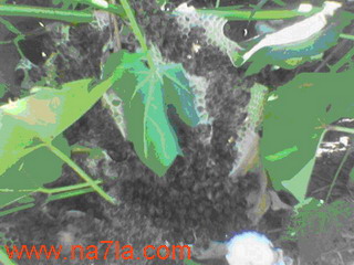 طرد نحل لم يجد مسكناً فحط على شجرة قطن وبدأ ببناء الشمعنصوير النحال أياد - الرقة |