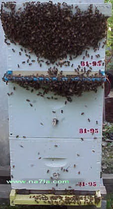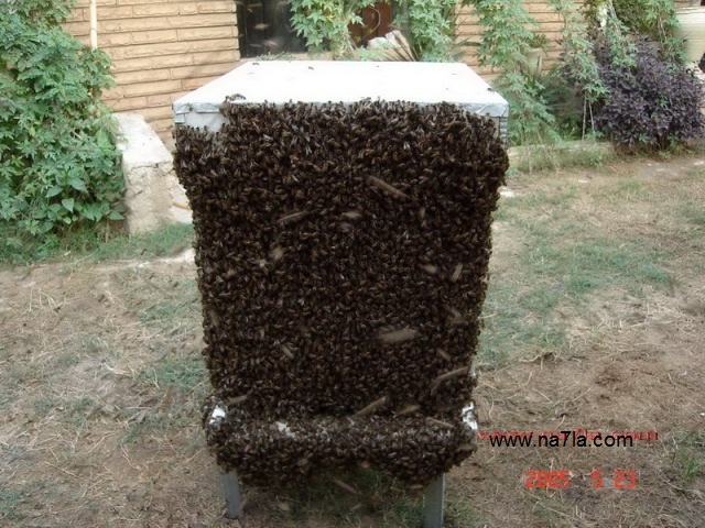 خلية تفيض نحلاً - أم أنه طرد تعلق بخليتيه الأم بانتظار الملكة؟