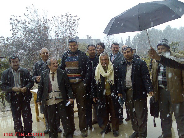 سقط الثلج فخرج المشاركون في الدورة التدريبية للإدارة الشاملة للمناحل التي أقيمت في دمشق عام 2008