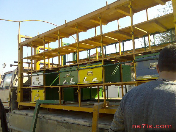 حاوية لخلايا النحل يمكن تحميلها على شاحنةوتتسع لـ 56 خلية عريضة تتسع لـ20 إطاراً
