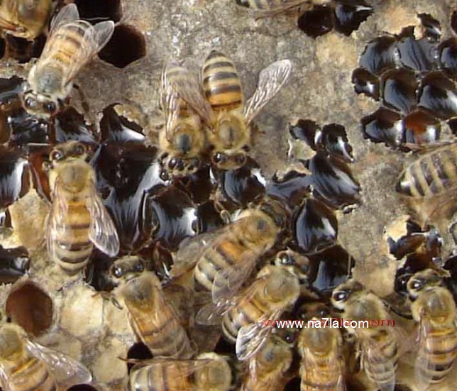 شغالات تزيل غطاء نخاريب العسل لتغذية الحضنة