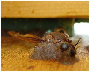 استعمال النحل للعكبر في تحنيط فراشة السمسم بعد قتلها داخل الخلية