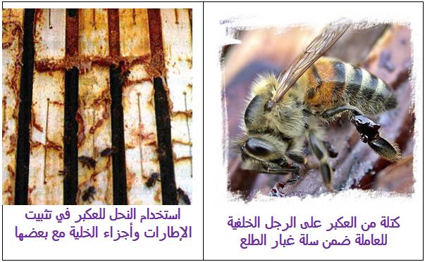 هذا هو العكبر الذي يحمي النحل من الأمراض، فهو يحمي العسل من الفساد، وقرص الشمع الطبيعي يحتوي تقريباً على (90-95%) شمع نقي و (5-10%) عكبر.
