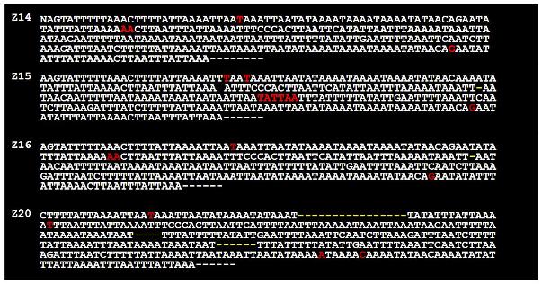 يبين الجدول 2 الاختلافات الموجودة بين هذه الأنماط الأربعة، ويمكن ملاحظة كل من الحذف deletions المشار إليه بـ (-) و الإدخالات insertions الحاصلة في نيكليوتيدات الأحماض الميتوكوندرية مشار إليها بلون أحمر. نجري حالياً سلسلة لمنطقتي الـ Cytochrome B و ND2 لدراسة العلاقة الوراثية بين هذه الطرز المختلفة.