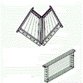 الإطار الخاص بمسك الطرود حسب تصميم دي لسبي. وهو عبارة عن إطار مزدوج مسلّك ومثبت معاً من الأسفل بمفصلين. |