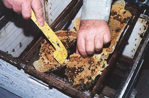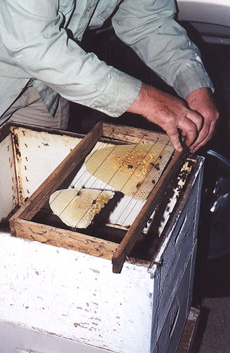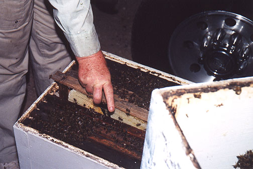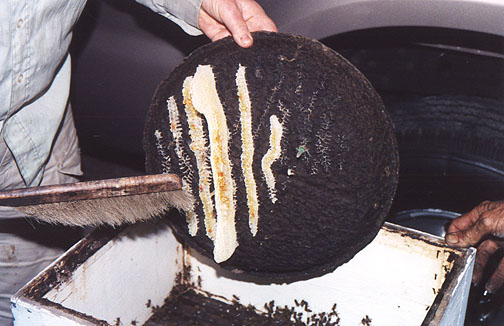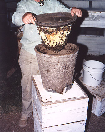 يجري أولاً رفع الغطاء فنجد أن أقراص الشمع معلقة به. يمكن إمساك الطرود الشاردة بوضع وعاء أو صندوق خشبي أو حتى كرتوني