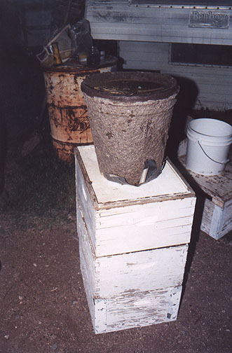 هذا وعاء بسيط مخصص لصيد الطرود. ونورد في الصور التالية كيفية إخراج الطرد ونقله لخلية نظامية. جميع الصور أخذت ليلاً ضماناً لعدم هروب الطرد. |
