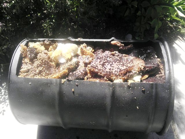 يؤتى بالشمع المراد تذويبه بعد غسله وتقطيعه لقطع صغيرة ويوضع في البرميل فوق الشبك ... ملاحظة:ينصح بوضع قليل من الماء في البرميل لكي لا يلصق الشمع ويسهل إخراجه.