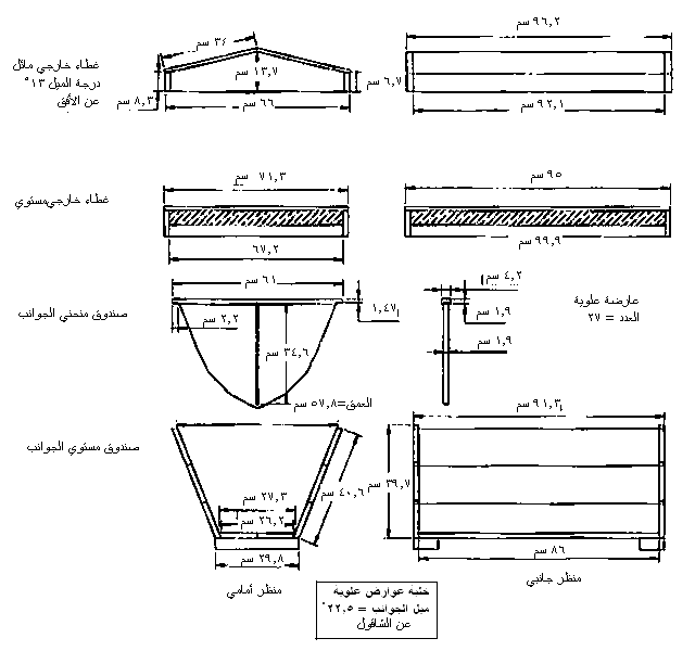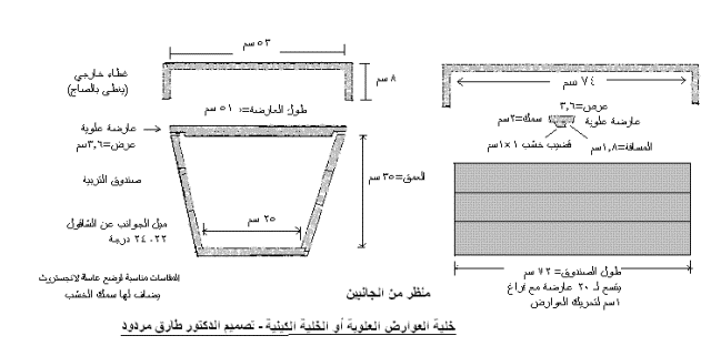هذا تصميم لخلية العوارض العلوية بنموذجين: نموذج بجوانب مائلة والآخر بجوانب مستوية مأخوذ من موقع أجنبي بعد تحويل المقاسات من الإنش إلى السنتيمير. |