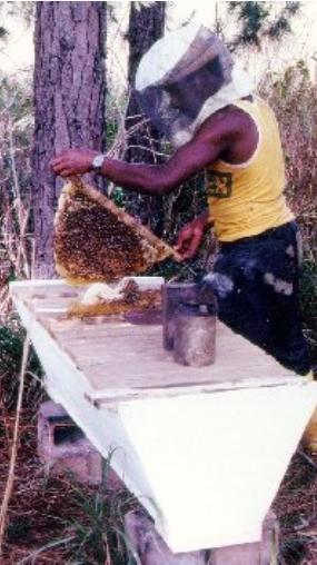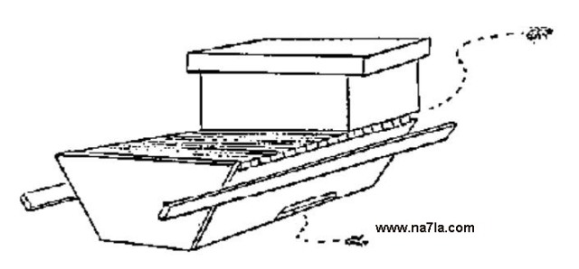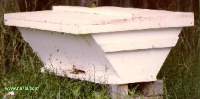 هكذا تبدو خلية العوارض العلوية في المنحل. وهي هنا موضوعة على أحجار إسمنتية لرفعها عن الأرض. لكنها في أفريقية تربط بالحبال على الأشجار لحمايتها من النمل. |