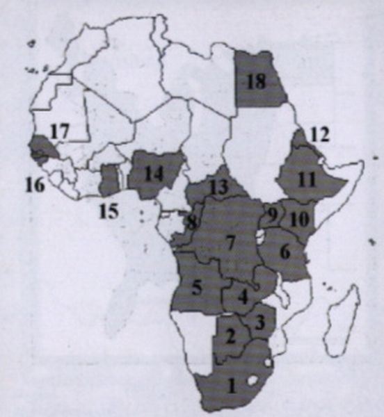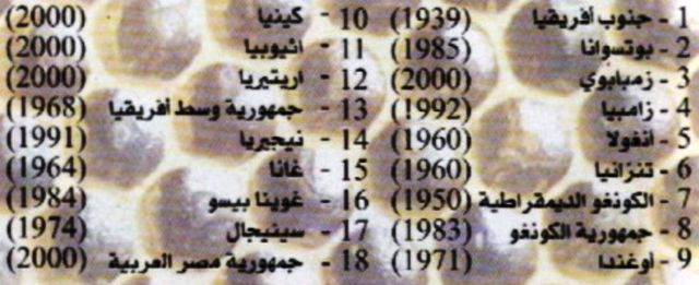 1- الدول التي تنتشر فيها خنفساء النحل الصغيرة في أفريقيا: