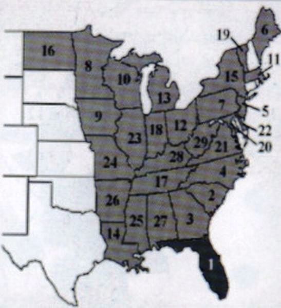 4- الولايات التي تتواجد فيها خنفساء النحل الصغيرة في أمريكا وتاريخ مشاهدتها لأول مرة:
