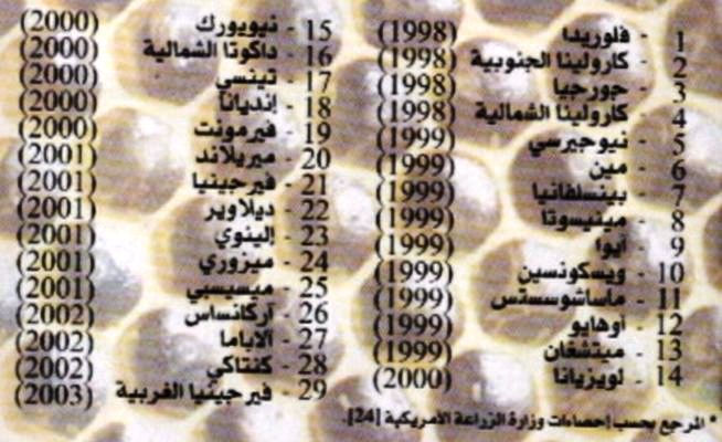 3- الولايات التي تتواجد فيها خنفساء النحل الصغيرة في أمريكا وتاريخ مشاهدتها لأول مرة:
